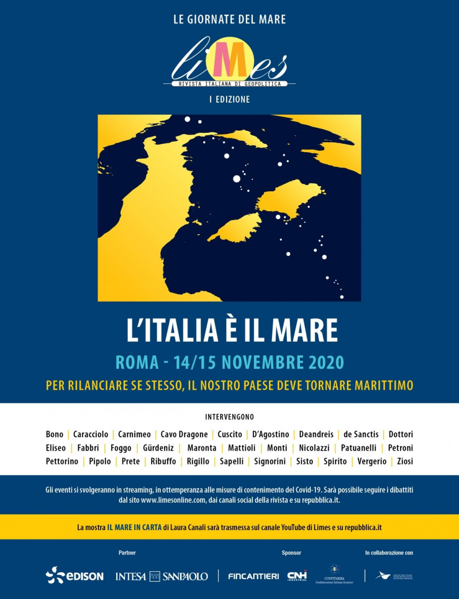 Organizzato da Limes – Rivista Italiana di geopolitica, ed ospitato nella sede di Confitarma, il 14 e 15 novembre si terrà il primo appuntamento de “Le Giornate del Mare”, intitolato L’Italia è il mare.