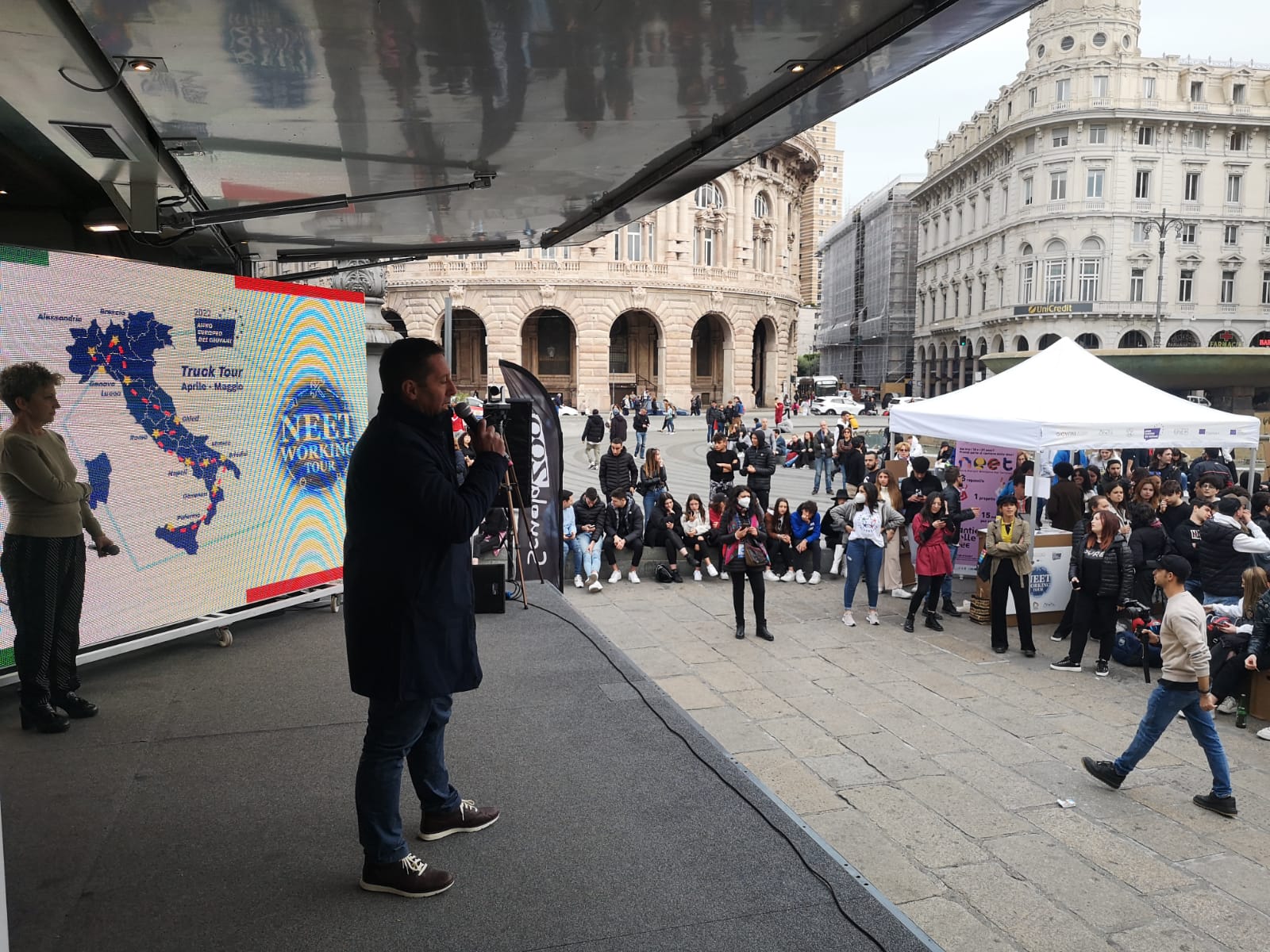 In piazza De Ferrari è stato allestito un Villaggio con gazebo e info point dedicati al tema della inclusione sociale e lavorativa dei giovani.