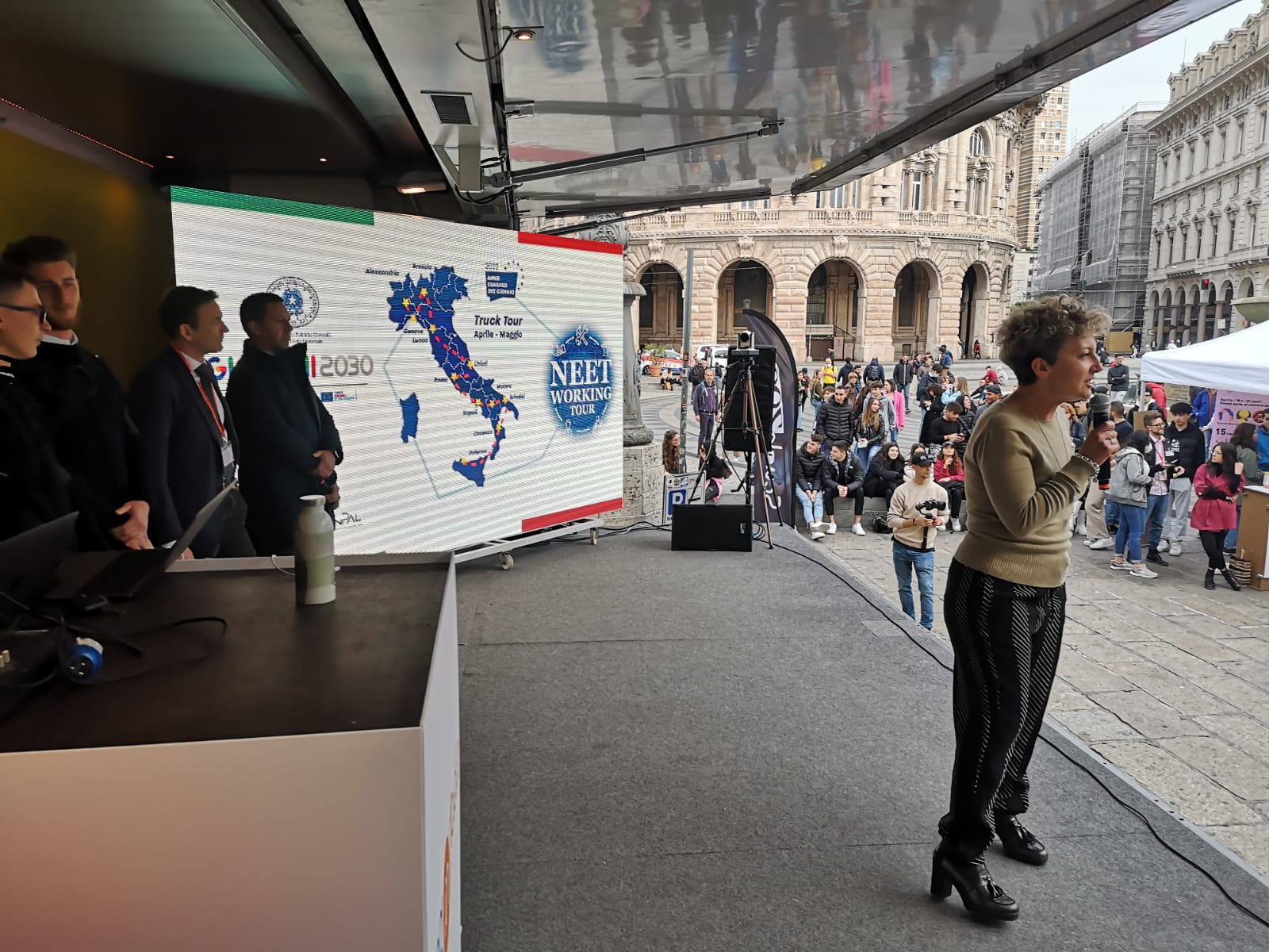 Seconda giornata della tappa genovese del NEET Working Tour a Genova nel Palazzo della nuova Borsa valori.