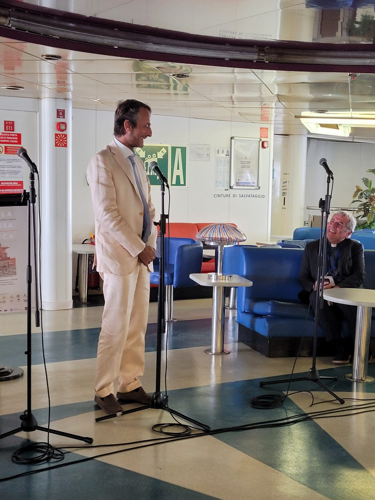 “Siamo felici di aver avuto la possibilità di ospitare questo evento non solo come società di navigazione ma come azienda che crede nella promozione dei valori e del dialogo – ha così dichiarato Lorenzo Matacena, AD del Gruppo Caronte & Tourist – I momenti di confronto su questa nave hanno un valore immenso, ancor di più in un periodo storico dove il conflitto è, purtroppo, la realtà ed è sempre conseguenza diretta di ignoranza e pregiudizio”.