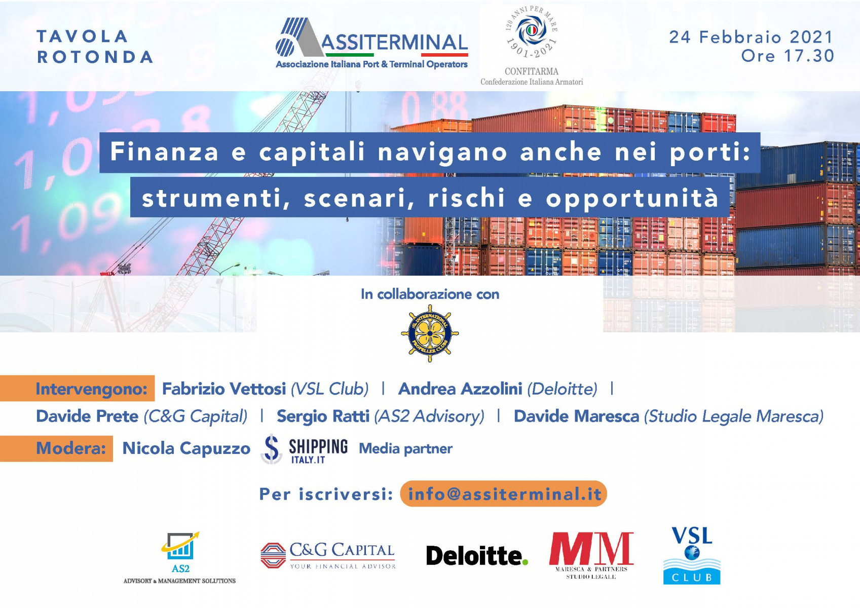 Tavola rotonda On Line, “Finanza e capitali navigano anche nei porti: strumenti, scenari, rischi e opportunità promossa da ASSITERMINAL e Confitarma.