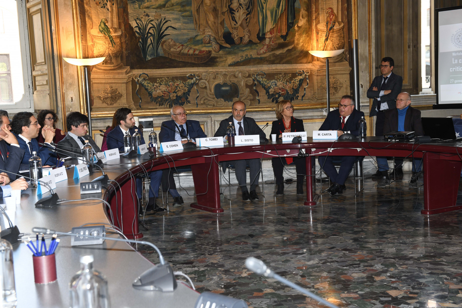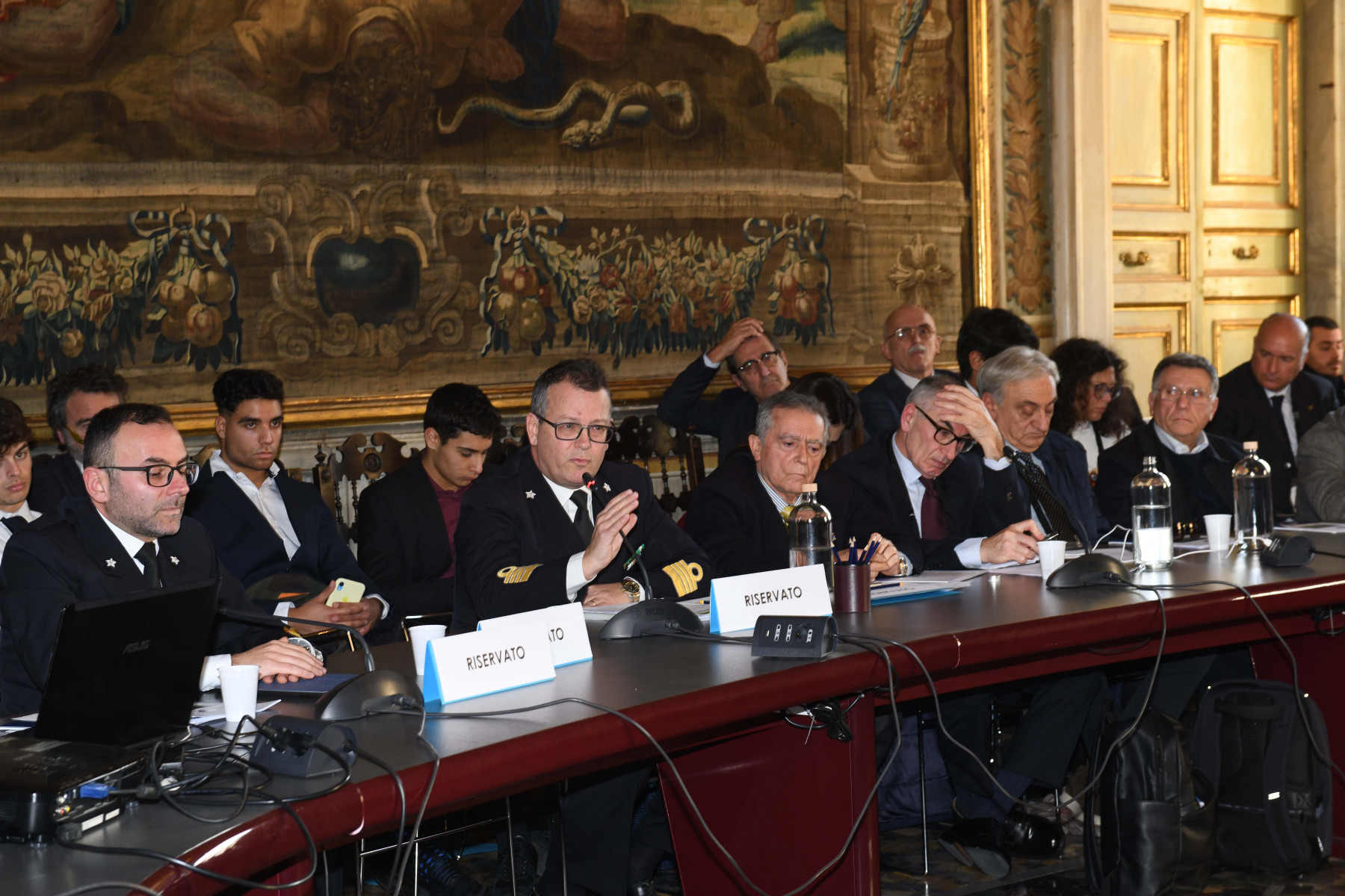 Nel successivo dibattito sono intervenuti: in rappresentanza del Ministero Infrastrutture e Trasporti, Dott.sa Stefania Moltoni, per la Marina Militare, Com.te Antonio Zippo, Amm. Francesco Chiappetta e Amm. Giovanni Vitaloni; per il Comando Generale del Corpo delle Capitanerie di Porto-Guardia Costiera, Com.te Vincenzo Leone (Direttore marittimo del Lazio) e Com.te Massimo Seno (Capo del II Reparto); in rappresentanza dei Comandanti della marina mercantile, Giovanni Lettich (presidente Collegio Capitani), Emanuele Bergamini, Nicola Corradino e Salvatore Scotto di Santillo; Alessandra Xerri, ordinario di diritto della navigazione e socio IIN.