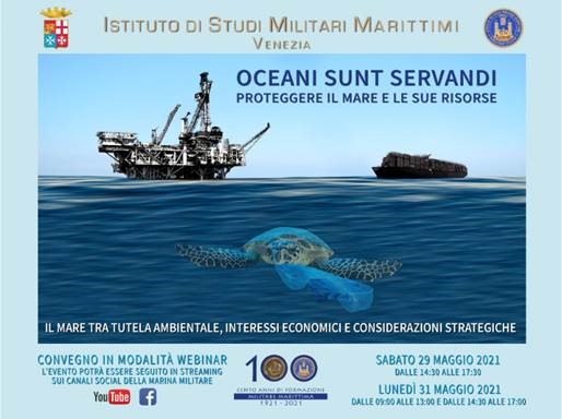 Convegno “OCEANI SUNT SERVANDI. Proteggere il mare e le sue risorse – Il mare tra tutela ambientale, interessi economici e considerazioni strategiche” che si terrà nelle giornate di sabato 29 e lunedì 31 maggio a Venezia presso la Biblioteca dell’Istituto di Studi Militari Marittimi.