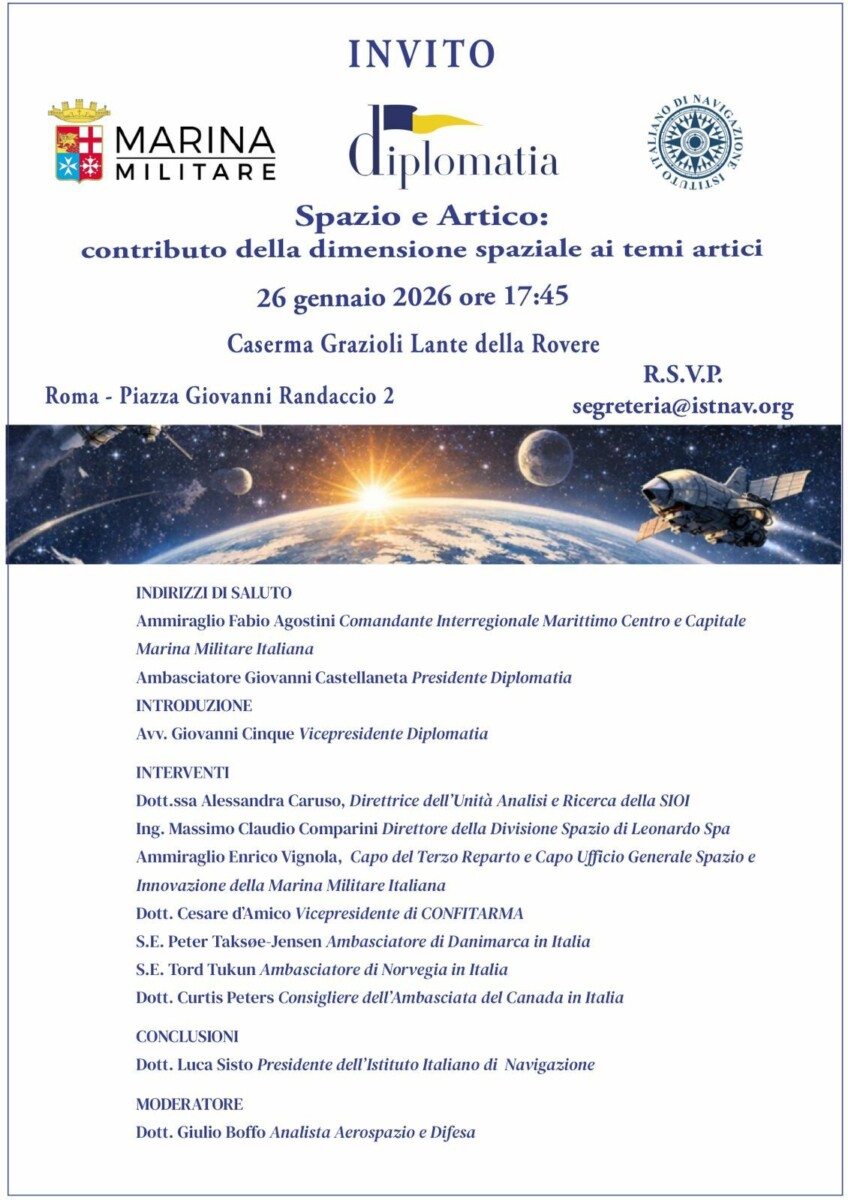 DIPLOMATIA: “Spazio e Artico: contributo della dimensione spaziale ai temi artici” Gen 16 , 2026 | Landing Page
