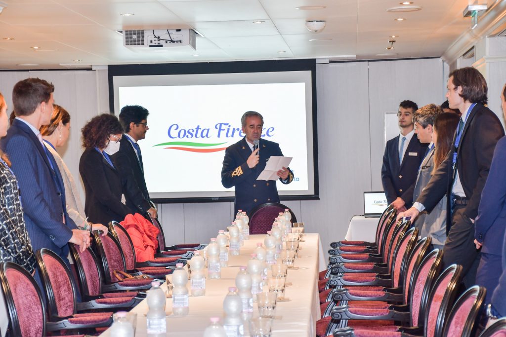 Dopo il saluto del Comandante di Costa Firenze, Giovanni Corsini, il Direttore Generale Luca Sisto ha illustrato e discusso con i Giovani Armatori i principali dossier che l’armamento intende sottoporre al nuovo Governo.