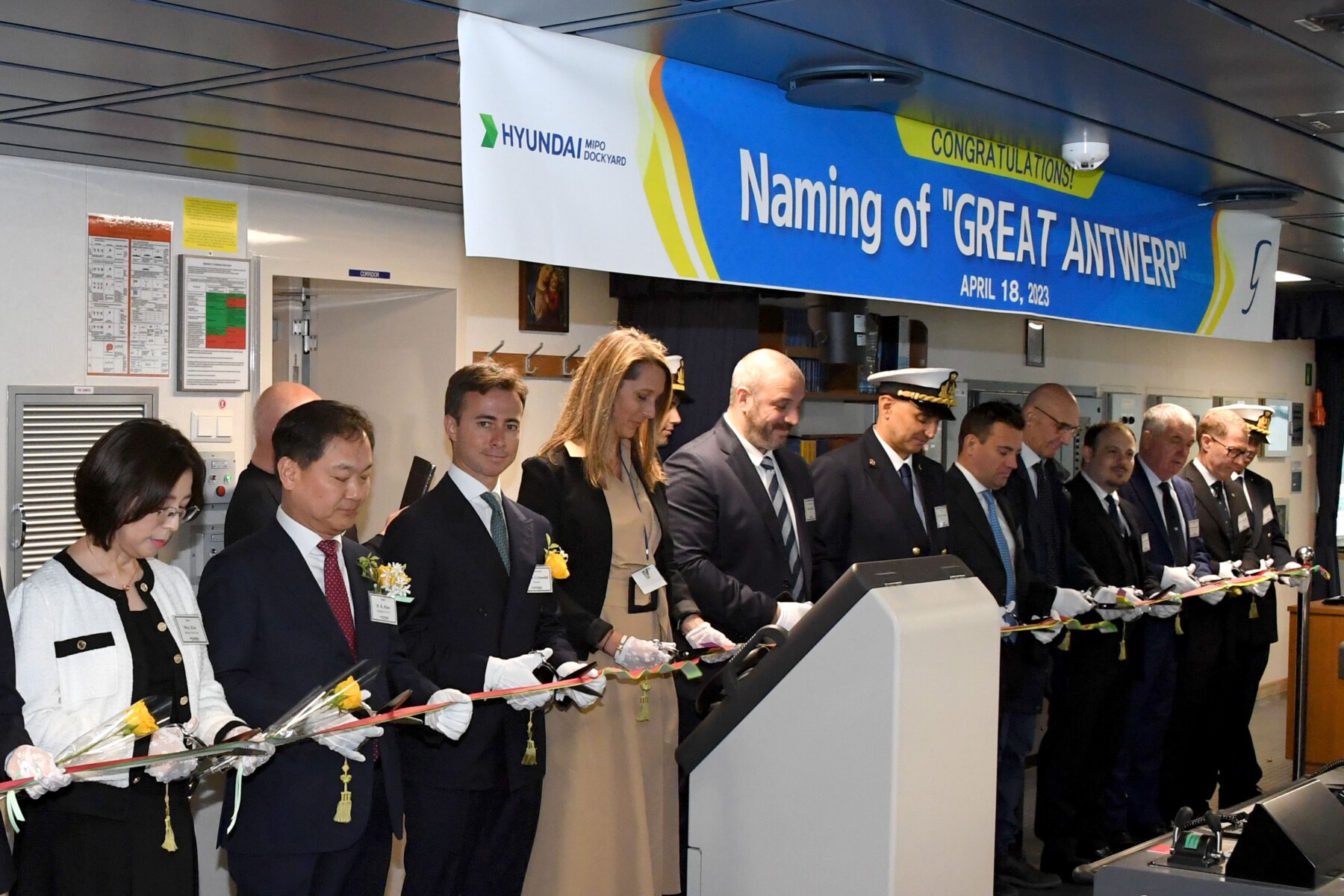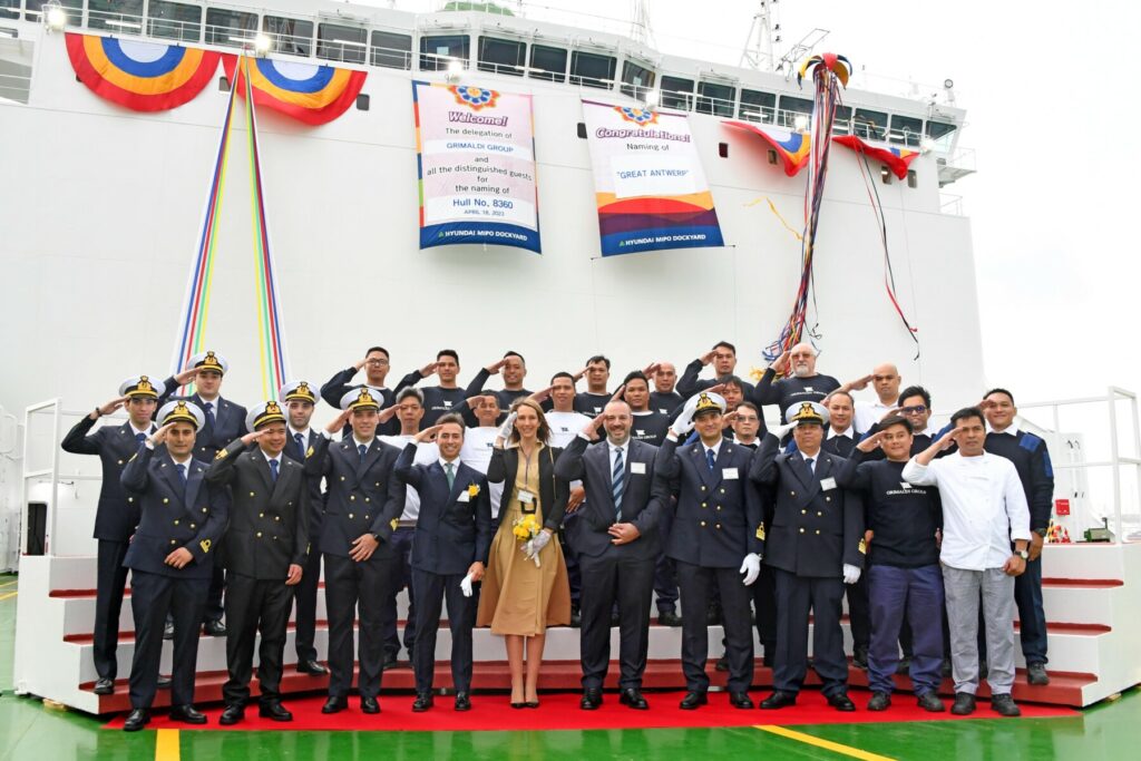 Napoli, 18 aprile 2023 – Il Gruppo Grimaldi ha preso oggi in consegna ad Ulsan (Corea del Sud), presso il cantiere Hyundai Mipo Dockyard Co. Ltd, la nave Great Antwerp, prima delle sei unità ro-ro multipurpose commissionate poco più di due anni fa alla società coreana. La nave inaugura una nuova classe denominata “G5”, evoluzione della precedente classe di unità ro-ro multipurpose “G4”, costruite dallo stesso cantiere e prese in consegna dal Gruppo Grimaldi tra il 2014 ed il 2015.