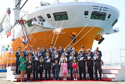 Alla cerimonia del varo della Great Lagos hanno partecipato, tra gli altri, Heung-Won Seo, Senior Executive Vice President di Hyundai Mipo Dockyard Co. Ltd, Guido Grimaldi, Deep Sea Commercial & Operations Director del Gruppo Grimaldi, diversi manager del cantiere coreano e della compagnia armatoriale partenopea e rappresentanti dei principali clienti con cui quest’ultima collabora sulle tratte che collegano Europa, Nord e Sud America ed Africa Occidentale.
