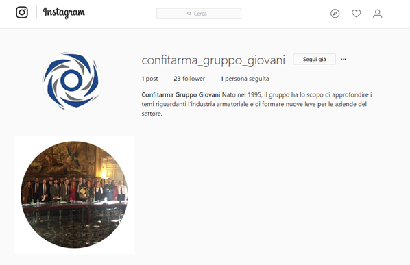 Attraverso l’utilizzo di Instagram, i Giovani Armatori intendono dotarsi di uno strumento rapido e moderno con cui comunicare le immagini relative alle proprie aziende, alla propria attività e al settore di appartenenza.