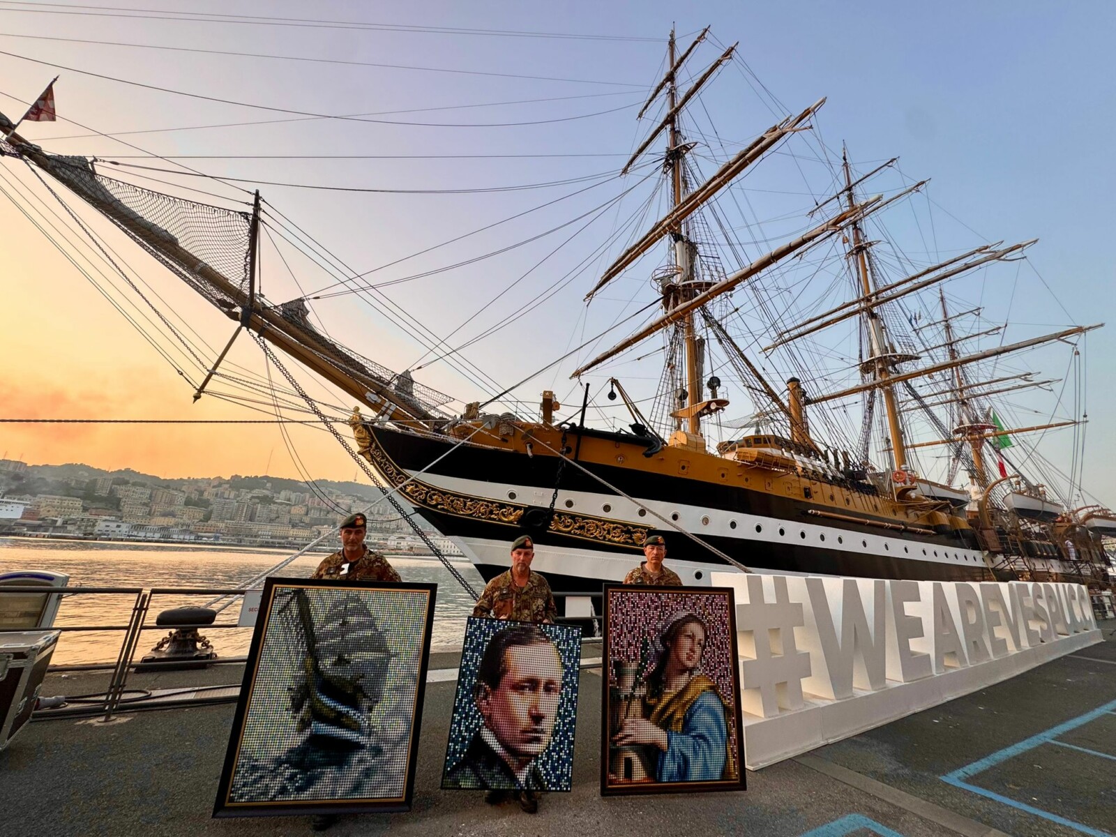 L’11 giugno, tre opere – Perseverance, Santa Barbara Dots Portrait e Guglielmo Marconi Dots Portrait – sono state trasferite a bordo del Vespucci, ormeggiata ai Magazzini del Cotone, per essere esposte durante la presentazione ufficiale del catalogo “Guglielmo Marconi. Prove di Trasmissione”, promosso da Rai Cultura in collaborazione con il Comitato Marconi 150.