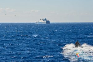 Nell’ambito dell’esercitazione, Nave CARABINIERE ha simulato un’operazione di presenza e sorveglianza marittima tesa al controllo dell’imposizione di un embargo navale. In questo scenario, la M/N EUROCARGO MALTA è stata intercettata dall’Unità Militare.