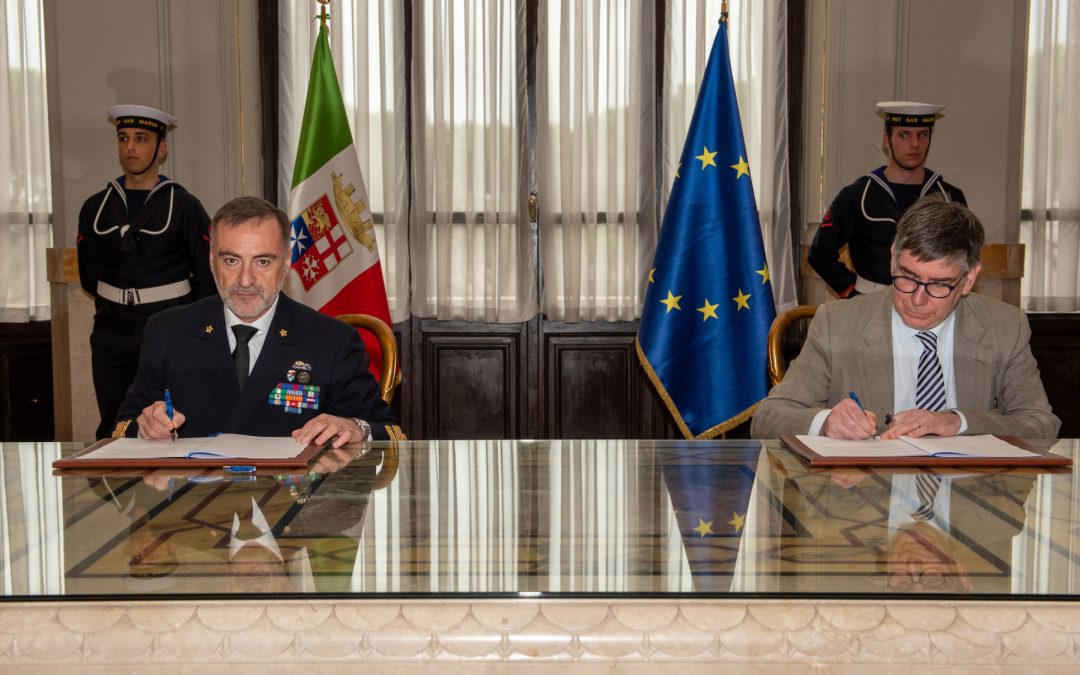 Firmatari del protocollo, il Capo di Stato Maggiore della Marina Militare, ammiraglio di squadra Enrico Credendino, e il prof. Piero Castoldi, Direttore del TeCIP.